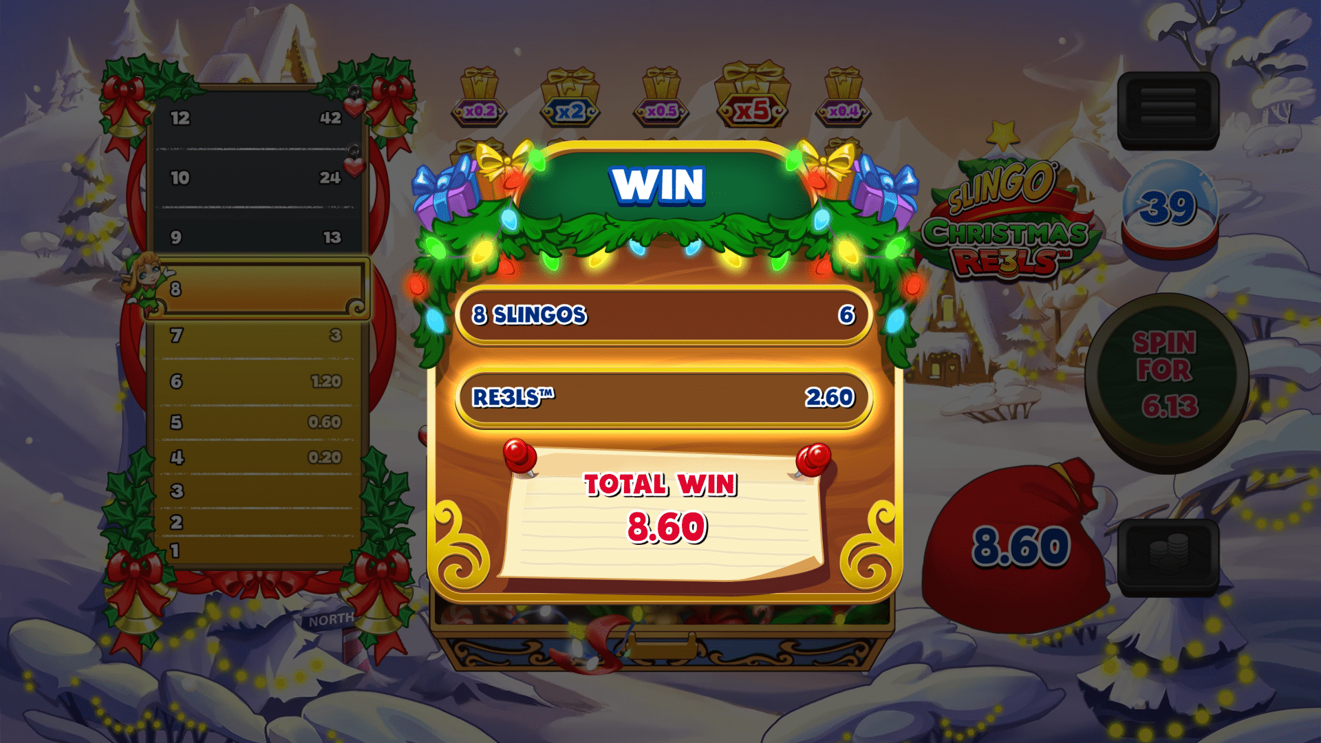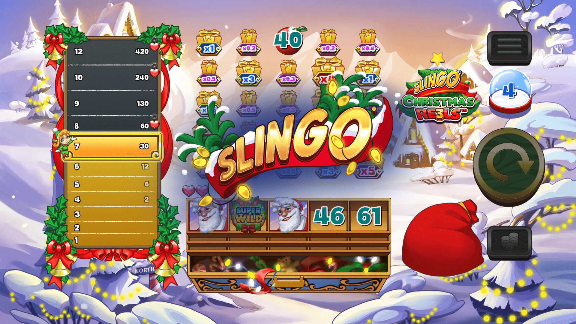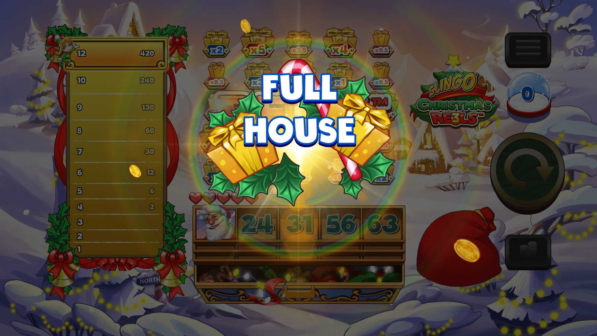 Piles of Santa’s gifts await, with 3+ stacks awarding the Full Grid!